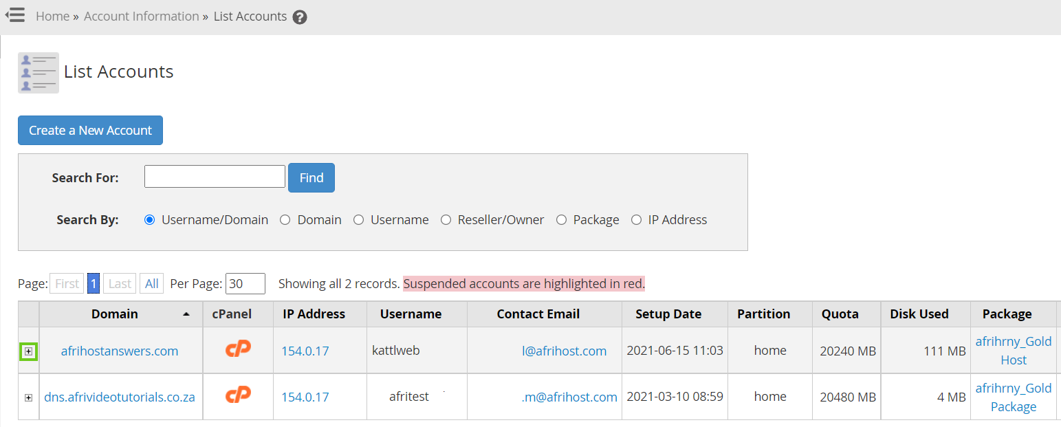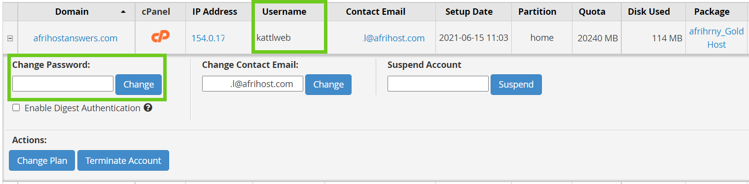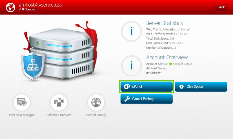 - cPanel URL: cpanel.thedomainname, example: cpanel.afrihostanswers.com