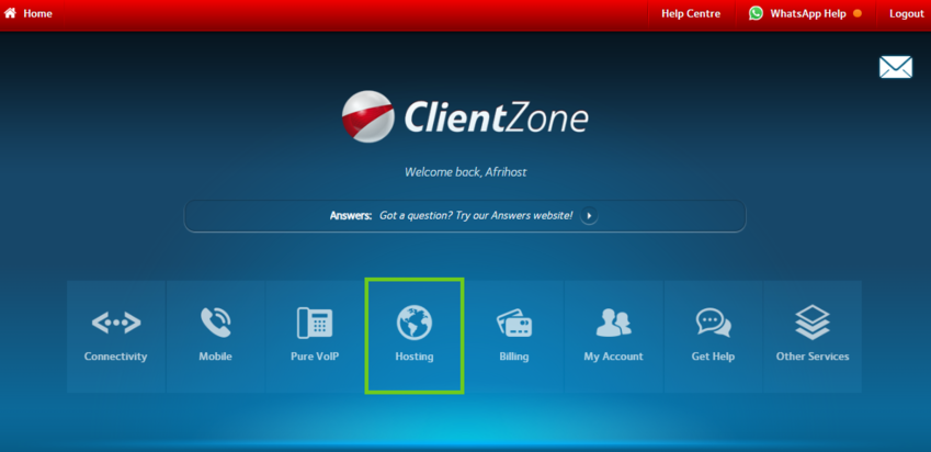 - Select the ‘Hosting’ tab.