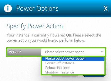 - From the drop-down options next to 'Action', select the power option you require.