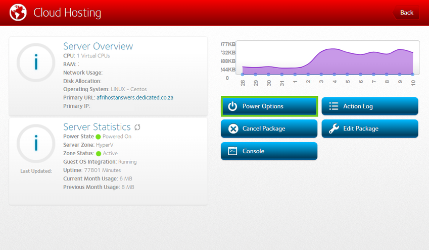 Rebooting a cloud server in ClientZone