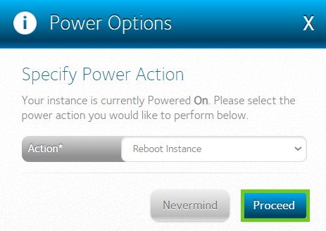 - Click on ‘Proceed’ to action the reboot request on the server.