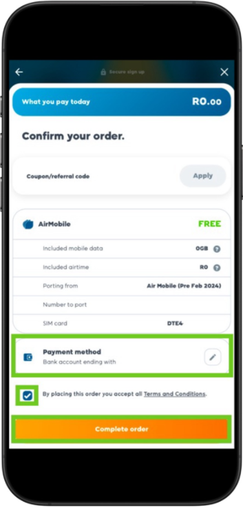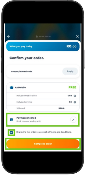 - Click ’Complete order’.