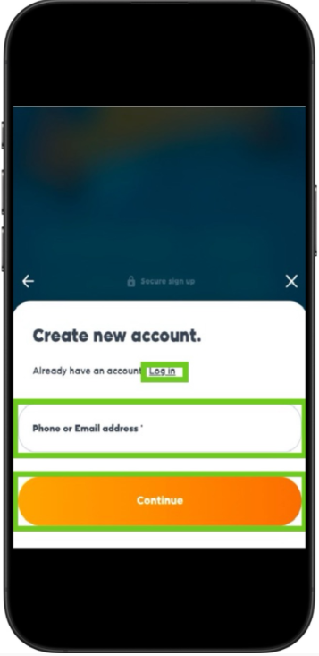 - If you are a new client, enter your ‘Phone or Email address’ and click ‘Continue’.