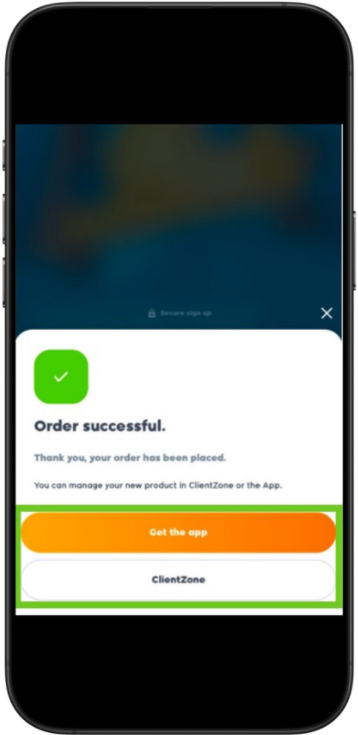 - A successful order message will appear. You can manage the AirMobile product in Clientzone or the AirMobile App.