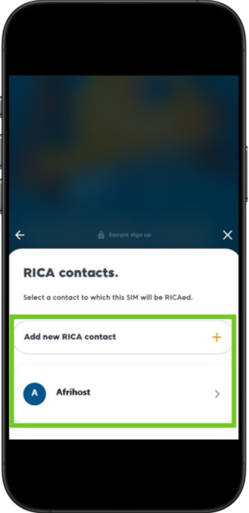 - Select an existing RICA contact or add a new one.