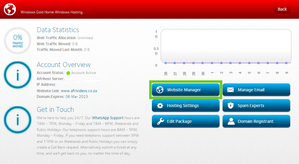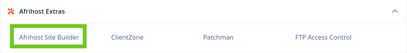 - Under the ‘Afrihost Extras’ section, select ‘Afrihost Site Builder’.