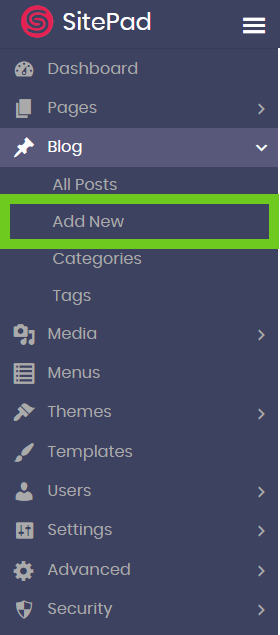 - In the menu located on the left-hand side, click ‘Blog’ and select ‘Add New’.