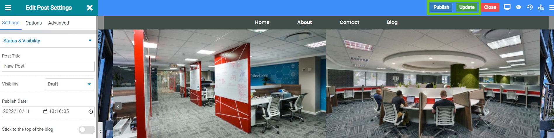- Click the 'Publish' button once you are ready for your blog to go live.