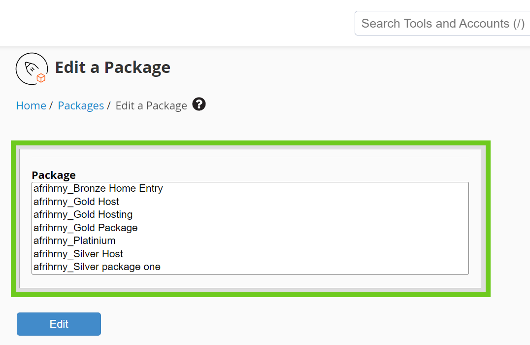 As a reseller, you will need to create your own packages to sell to your clients. ie: Gold, Silver, Bronze.