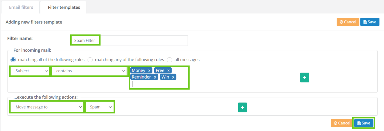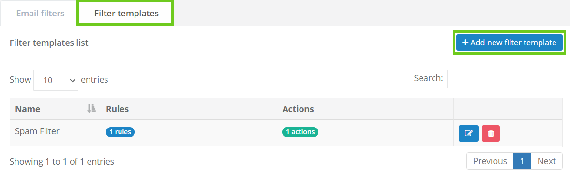 - Click on ‘Filters Templates’ and click on ‘Add new filter template’.