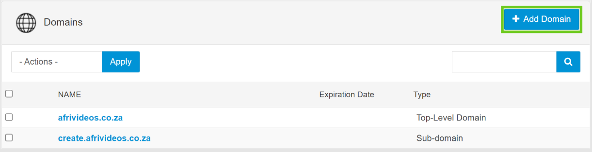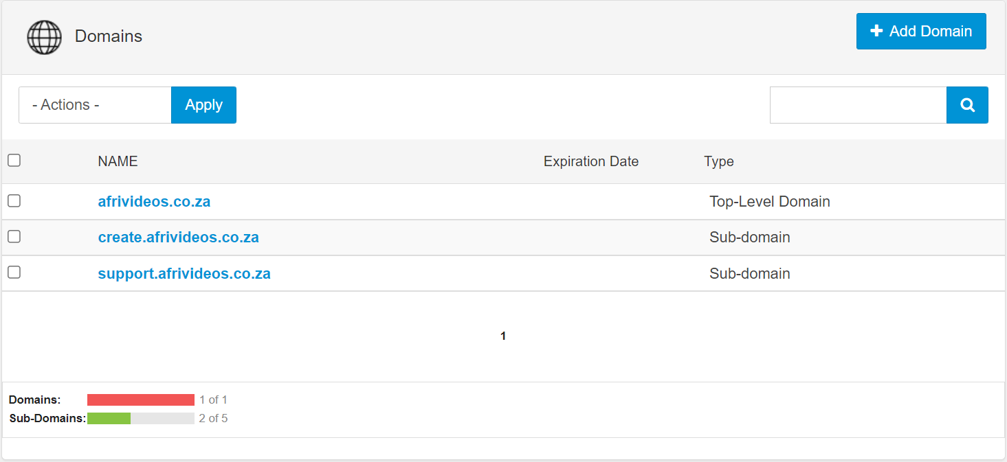 - Once the new subdomain is created, it will be added to the list of all the domains.
