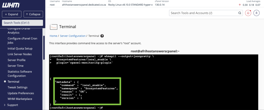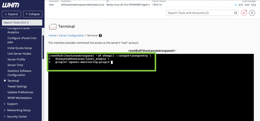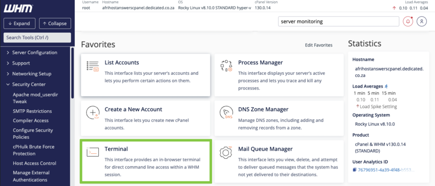 - Return to the main WHM interface under Plugins, the ‘Server Monitoring’ option will now be visible.