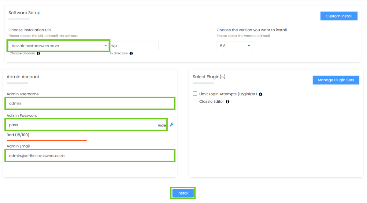 - Admin Username - Enter your username for your WordPress dashboard login.