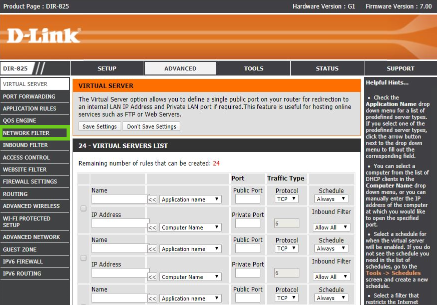 - Select ‘Network Filter’ from the menu on the left-hand side.