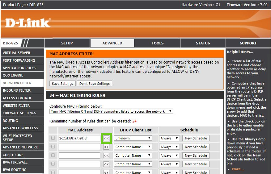 Ensure you know the MAC address of your PC before enabling MAC filtering to avoid any problems.