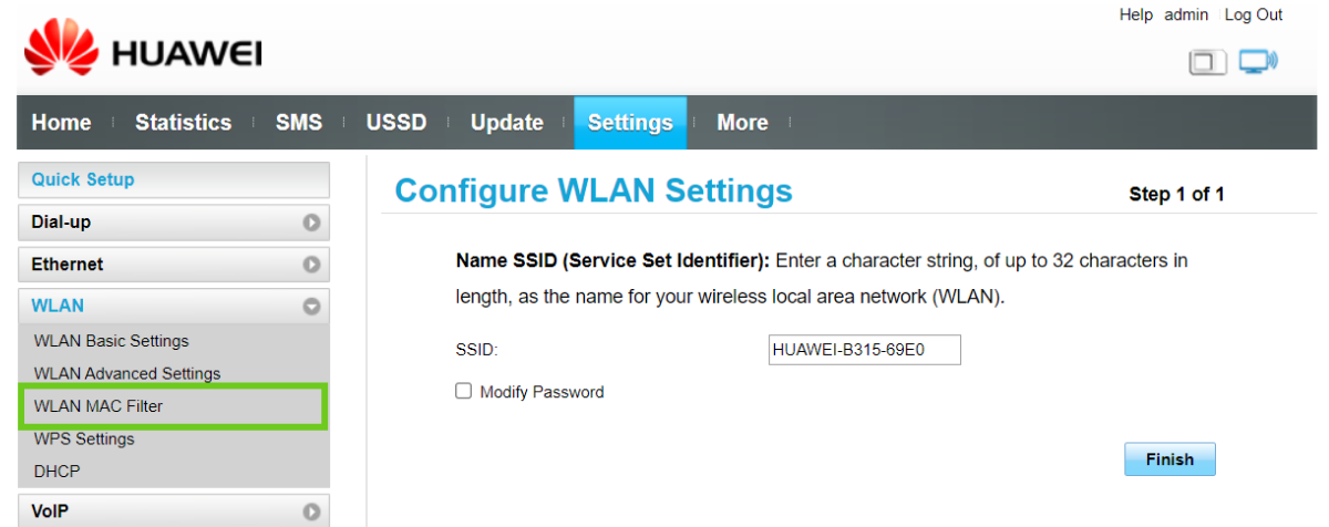 - Next to WLAN MAC Filter, you will have the option to ‘Disable’, ‘Allow’, or ‘Deny’ a device’s MAC address.