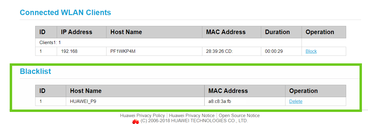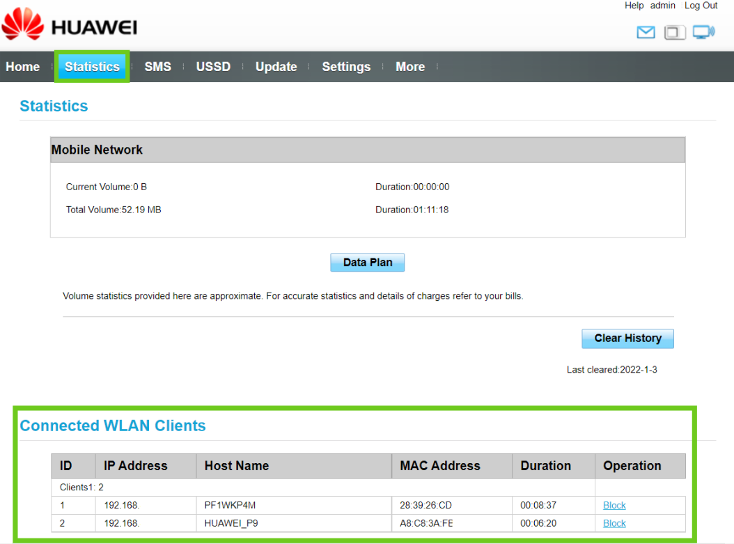 - Under ‘Connected WLAN Clients’, you will see the connected devices.