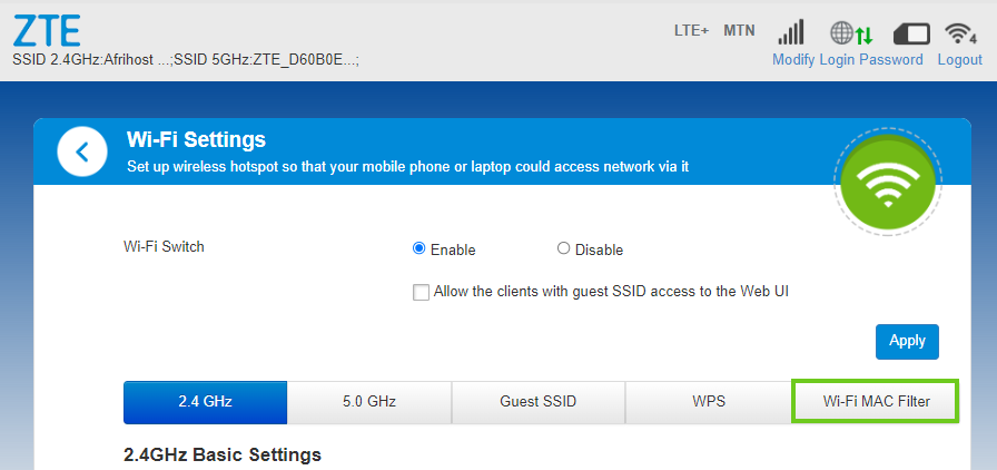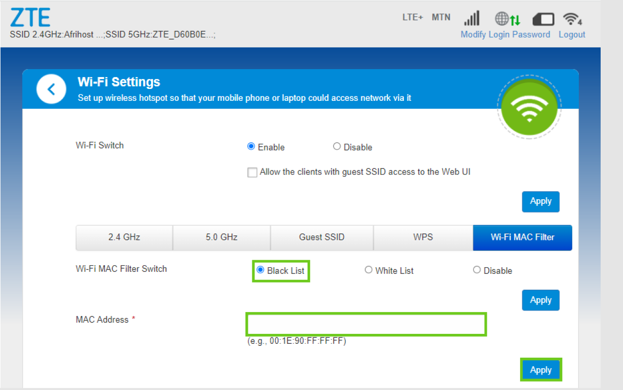 How to block users via MAC address filtering on your ZTE MF286C LTE router