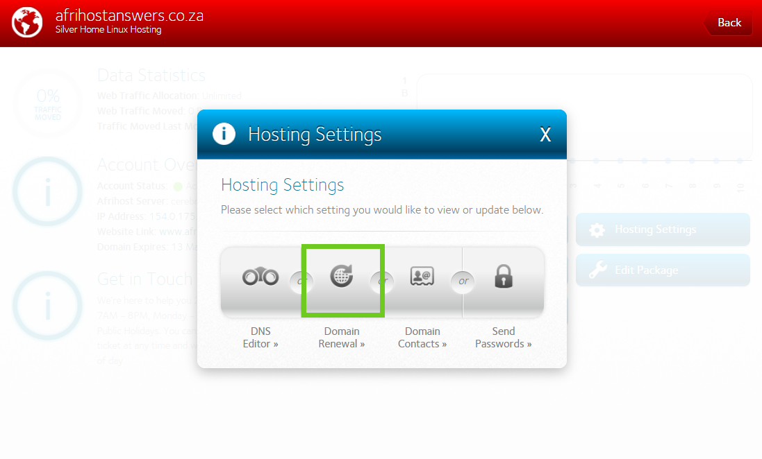 - Click on ‘Domain Renewal’ from the pop-up options.