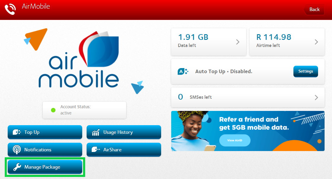 - Select the AirMobile package you wish to cancel.