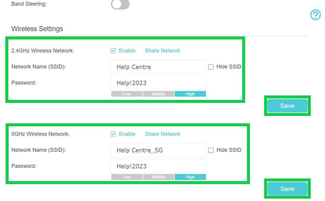 - Enter a new Network Name (SSID) and Password for the 5GHz network.
