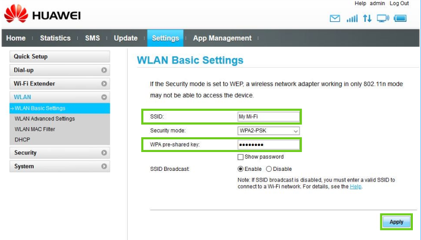 How to change your Huawei E5330 Mi-Fi device SSID name and password