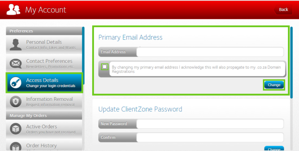 To have your access details updated you can easily change your primary e-mail address in ClientZone or by submitting a request to our support department.