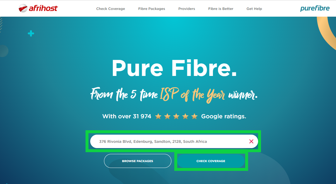 - Check the Fibre Coverage Map on the Afrihost Fibre microsite.