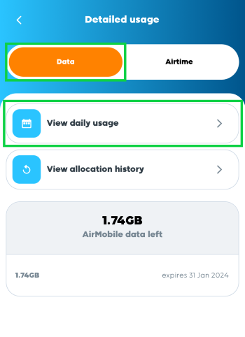 - Select 'View' beneath the AirMobile package you'd like to view the data usage for.