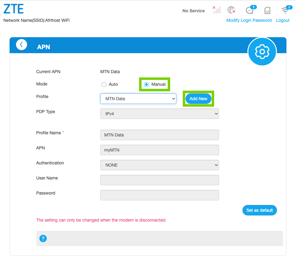 In order to use Afrihost's Pure 5G service, you must set up the APN on an approved CAT6 5G router. The steps below will show you how to set up the APN on your ZTE router.