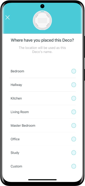 - Choose a location for this Deco. If the location is not listed, you can create a new one by selecting ‘Custom’.