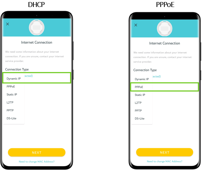 DHCP connects by obtaining an IP address and then connects automatically and should not require set up. PPPoE connects via an ISP and requires a username and password.