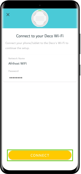 - Confirm your newly created WiFi network and select ‘CONNECT’ to join that network on your phone and the Deco will automatically be detected.