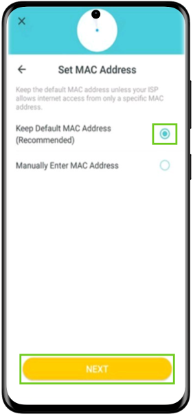 - Select ‘Keep Default MAC Address’.