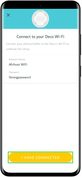 Once the connection has been established, go back to the app, and select ‘I Have Connected’, the app will begin to search and detect the Deco device.