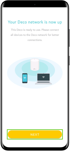 - The app will then optimise your network and the LED indicator of the second Deco device should remain steady green, which indicates that the connection is successful.
