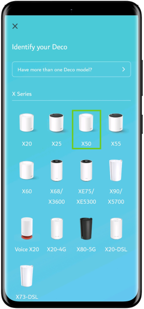 - Select the Deco icon according to your Deco’s model number.