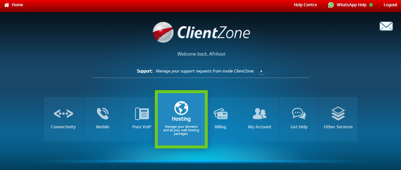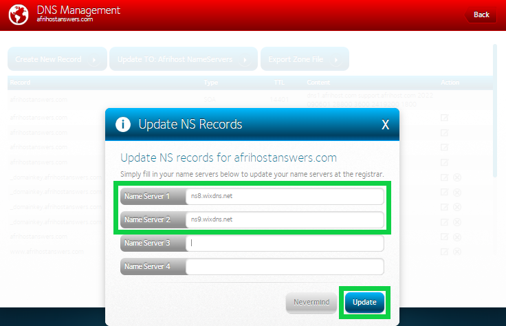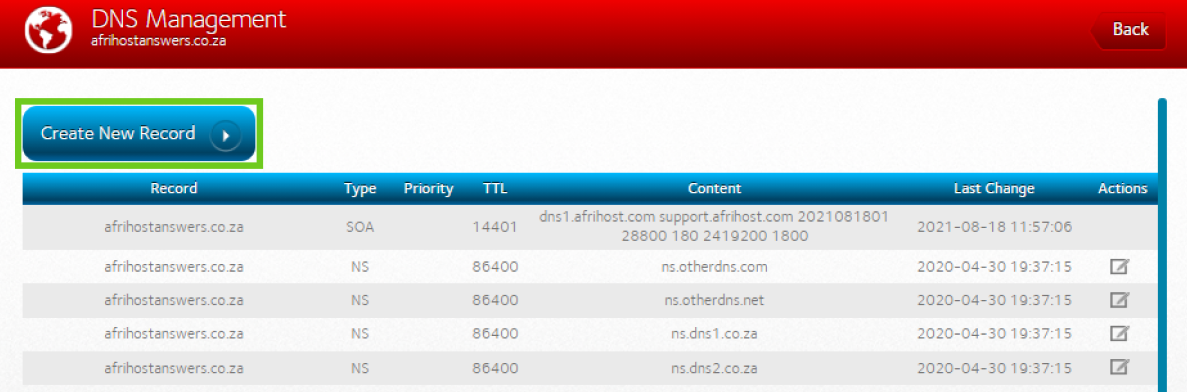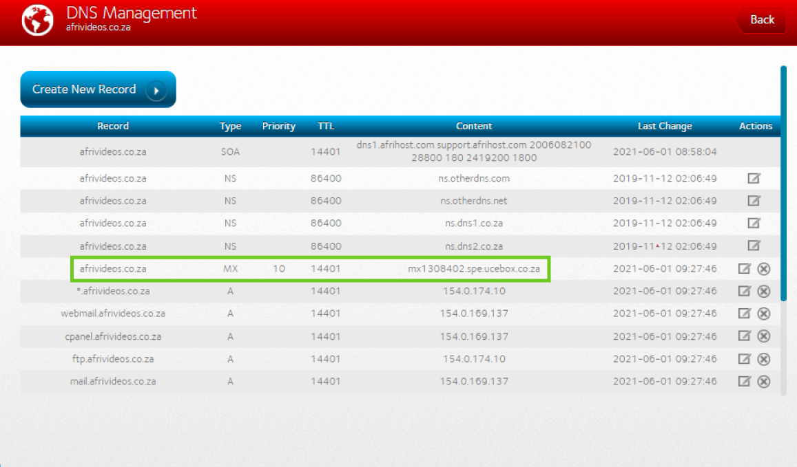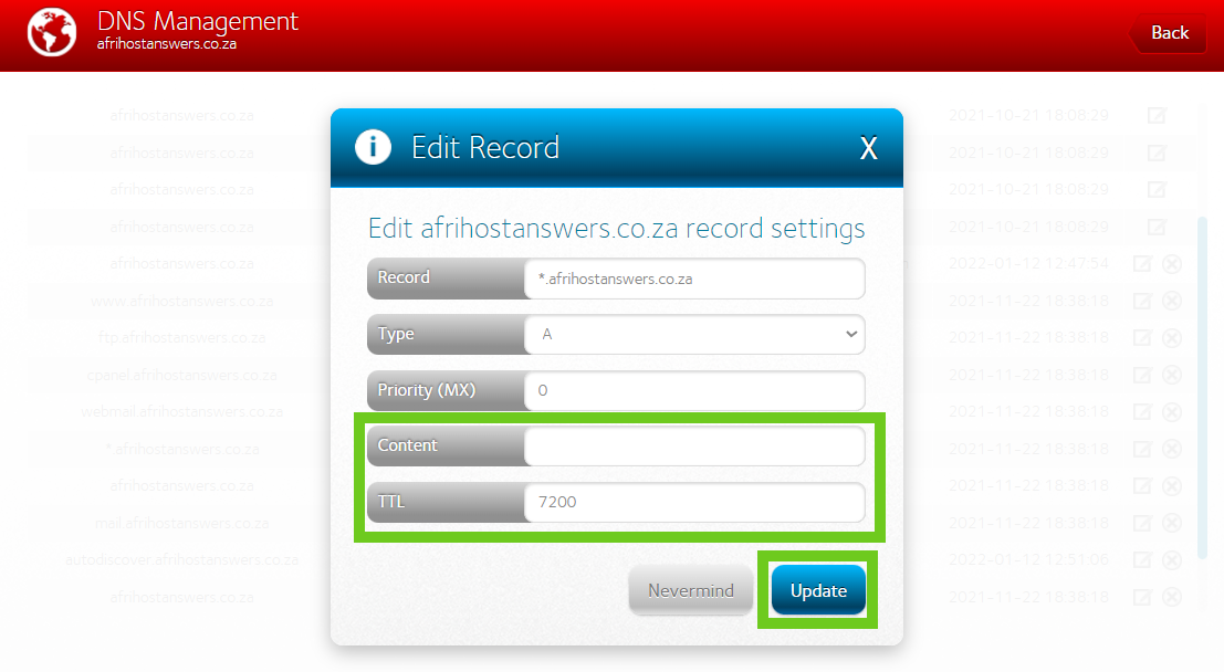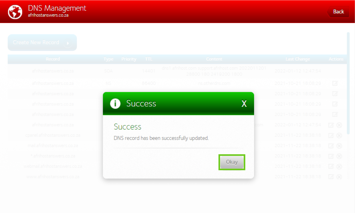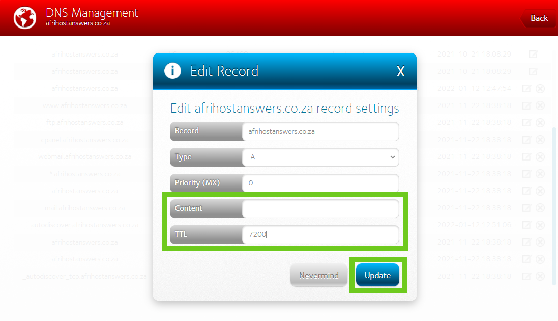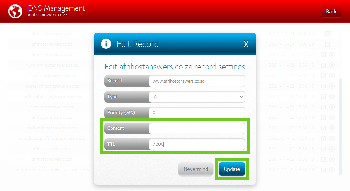 Step 2: Update the DNS records in Afrihost ClientZone