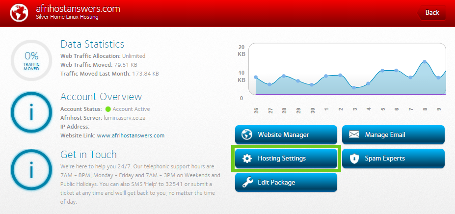 - Select the ‘Hosting Settings’ button.