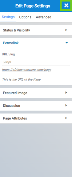 - Once you have updated the page settings, click on the 'X’ to close the settings.