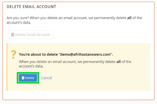 - A confirmation message will appear asking if you want to permanently delete the email account, click ‘Delete’.