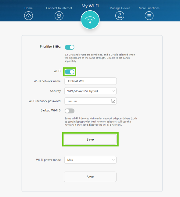 If ‘Prioritize 5 GHz’ is disabled, you will have to enable or disable both 2.4 GHz and 5 GHz WiFi networks, respectively.