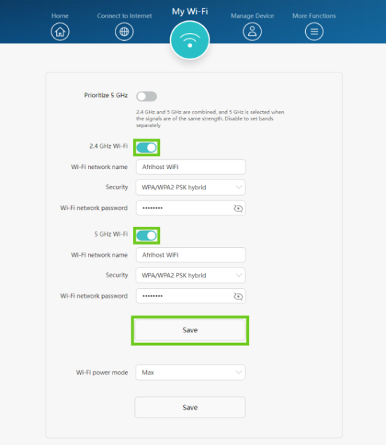 - In the Huawei router’s home dashboard, select ‘My Wi-Fi’ from the menu at the top.