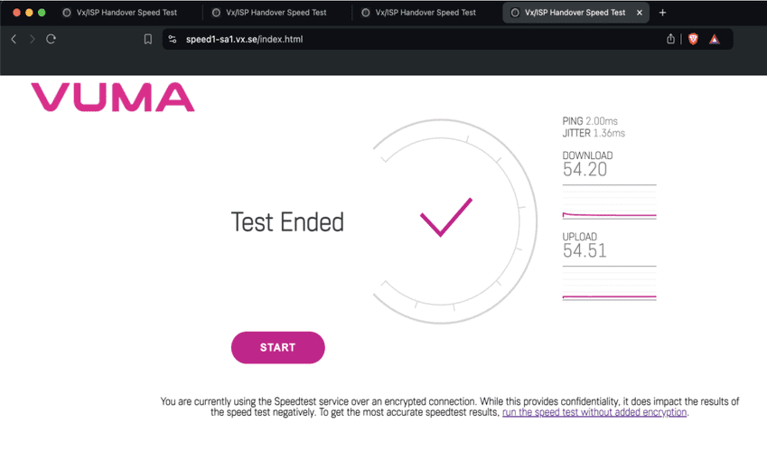 Vuma Reach, Vuma Aerial, Vuma Villages will not be able to utilise this speed test.