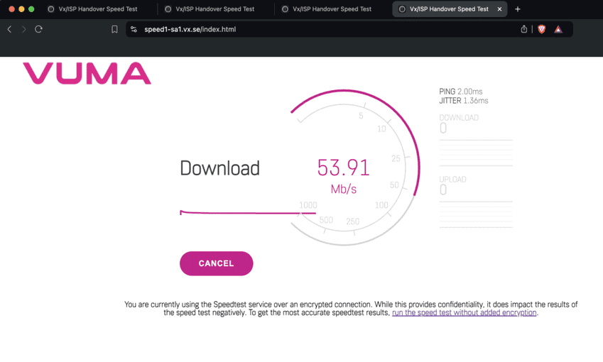 The Vumatel speed test will only work on Vumatel Core fibre lines.