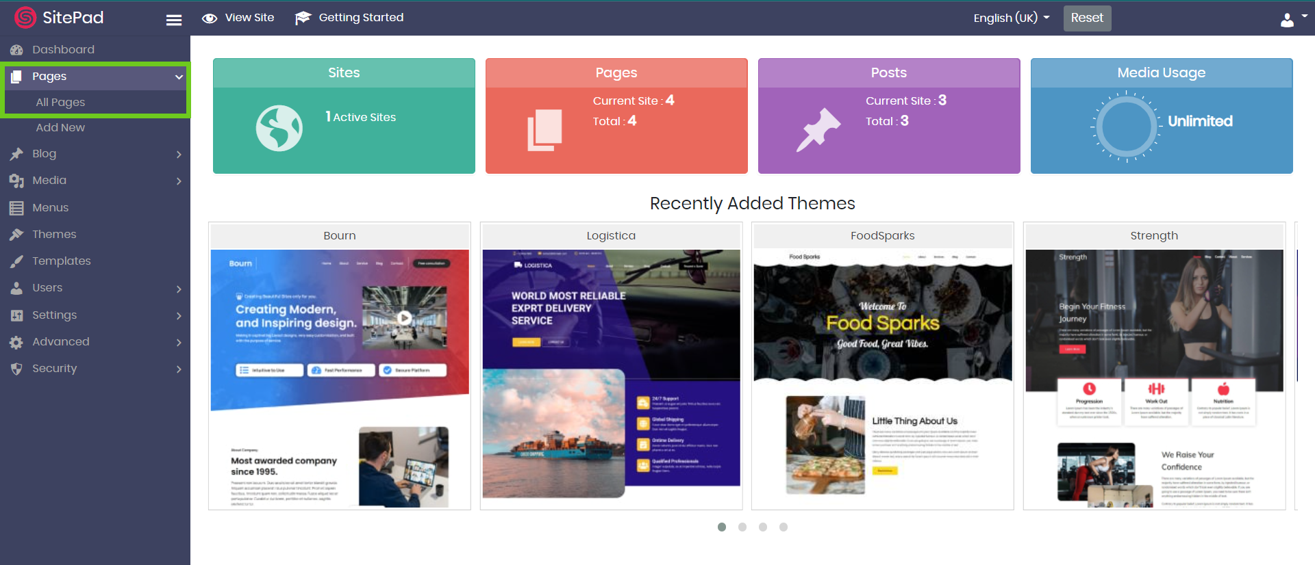 - Select ‘Pages’ from the menu on the left side of the dashboard, then select ‘All pages’ from the drop-down list.