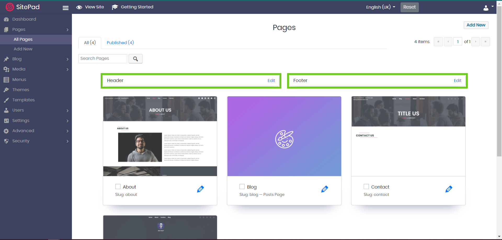 - Once you have selected to edit the header, you will be redirected to the SitePad editor where you can edit and update the header settings and style.