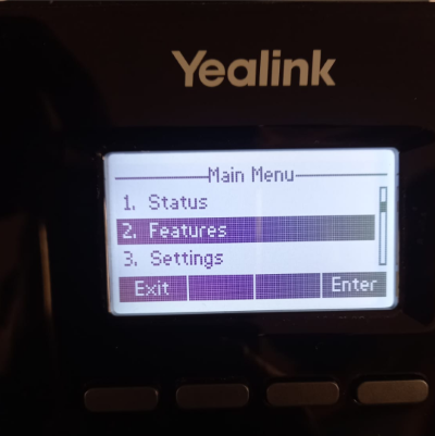 - Using the arrows, scroll down and select ‘Features‘ by pressing OK or Enter