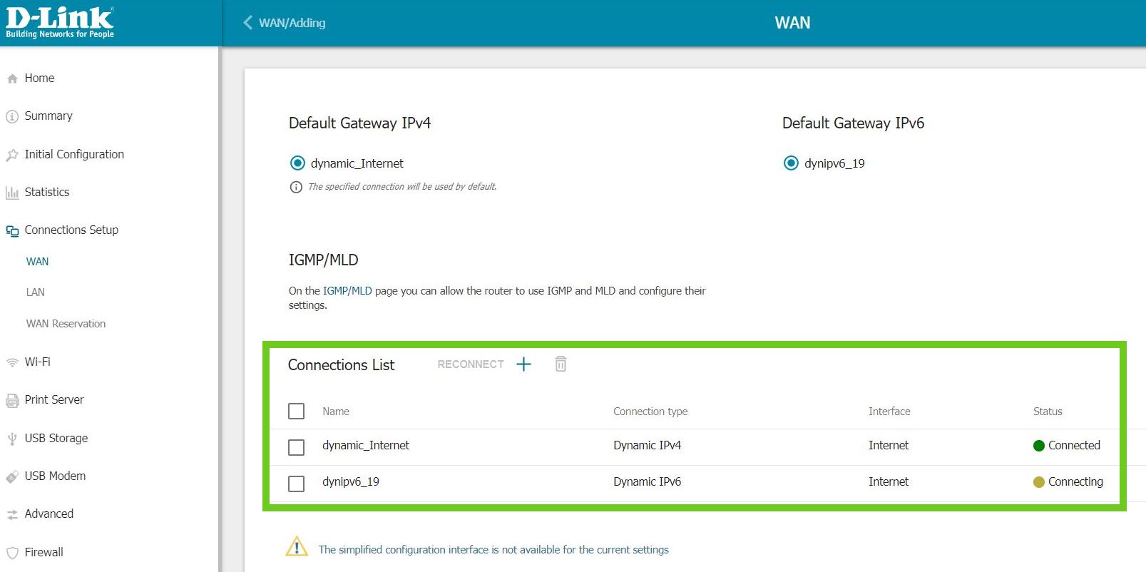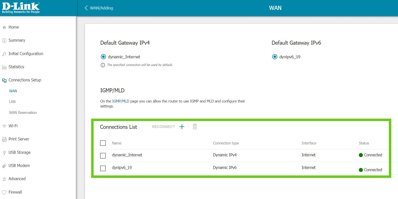 - In the Connection List, you will see that Dynamic IPv6 has been added.