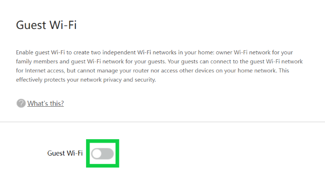 - Enable the ‘Guest Wi-Fi' toggle to activate the guest network.